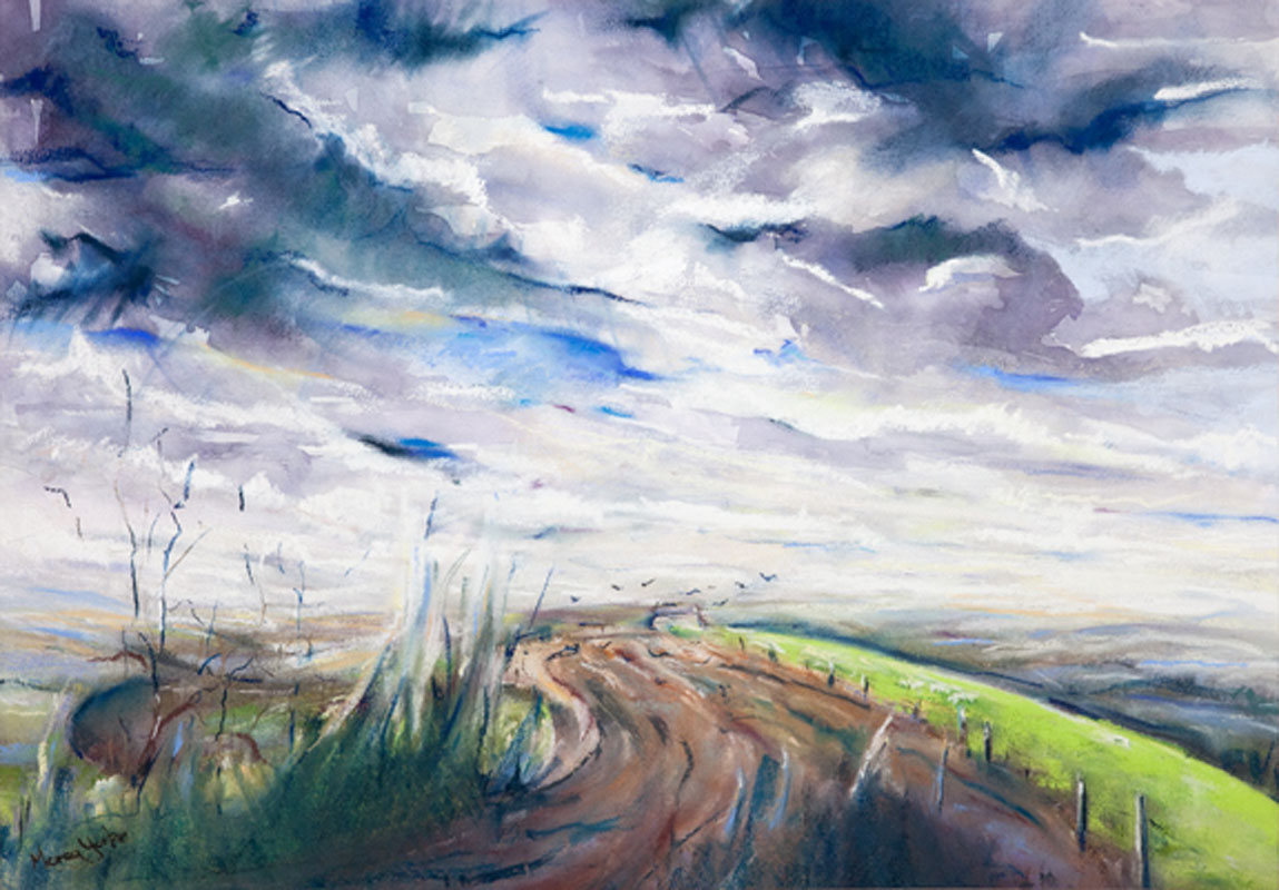 - Combining the opaque quality of watercolours with pastels to give added depth and texture as used in ‘Top of the South Downs 1’ in the Landscape section.